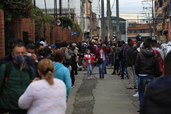 En almacenes como Alkosto de la carrera 30 con calle 10, en Bogotá, las filas rodean el perímetro del supermercado. Además, reportan fallas en la plataforma de ventas en línea.