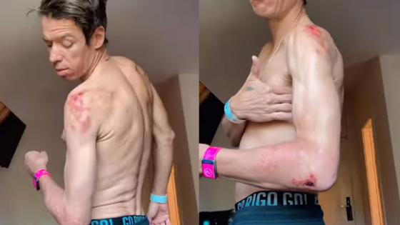 Él hace referencia a la fractura de la escápula del sector izquierdo de su espalda. Esa zona fue una de las afectadas cuando se cayó en el 2018 y tuvo que ser operado en varias partes de su cuerpo.