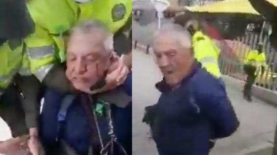 En redes sociales se conoció la agresión a un anciano que protagonizó un grupo de policías en una calle de Bogotá. Al parece el hombre mayor es un vendedor ambulante.