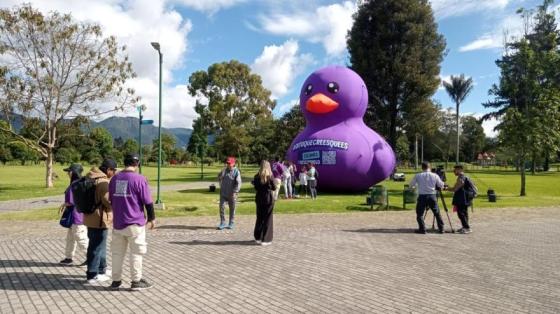 En las últimas semanas los capitalinos se sorprendieron al encontrar enormes patos inflables de color morado, en concurridos parques de la ciudad como el Parque Fontanar del Río en Suba, el Parque Simón Bolívar y el Parque El Tunal. La presencia inusual de este personaje causó desde risas hasta una ola de especulaciones sobre su origen y propósito.