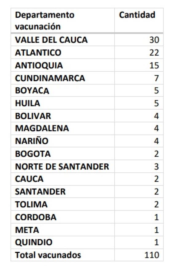 Estas dosis fueron aplicadas en los siguientes departamentos: