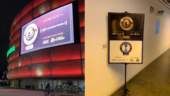 El 4 de diciembre, el estadio recibió por parte de la multinacional SGS Colombia el Sello Check In Certificado, aval creado el 17 de mayo de 2020 con la Resolución 0576 de 2020 expedida por el Ministerio de Comercio, Industria y Turismo. Así mismo, el Movistar Arena recibió el Sello de Experiencia Segura y Confiable otorgado y realizado por la Cámara Colombiana de Turismo en convenido con SGS.