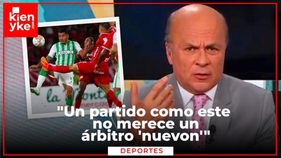 Para el comentarista deportivo, el árbitro del compromiso influyó directamente en el resultado, luego de pitar un penal insólito para Nacional, el cual convirtió Tomás Ángel (quien se fue de doblete), y que le dio el triunfo sobre el conjunto escarlata, que terminó con la mala noticia de la lesión de Iago Falque.