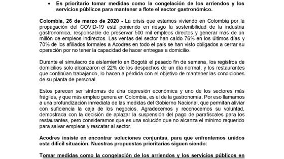 Por esta razón, el gremio propuso la cancelación de arriendos y servicios públicos para evitar los despidos colectivos a nivel nacional.