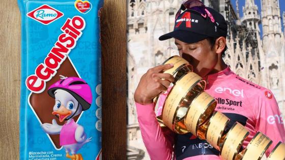 Ramo publicó una imagen a modo de felicitación a Egan que generó gran impacto en redes por la creatividad y originalidad del saludo. Se trata de un empaque diferente al tradicional, en el cual el pato que identifica al producto aparece vestido de rosa, el color que defendió el ciclista a lo largo del Giro, y con un casco del mismo tono.