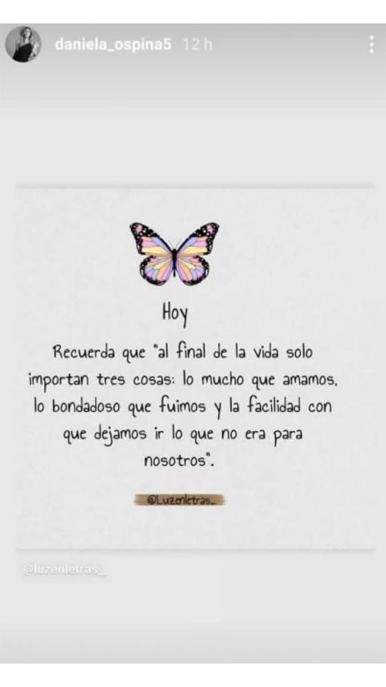 “Hoy recuerda que ‘al final de la vida solo importan tres cosas: lo mucho que amamos, lo bondadoso que fuimos y la facilidad con que dejamos ir lo que no era para nosotros’”, compartió Ospina.