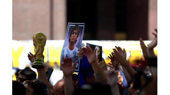 Los fanáticos de la leyenda del fútbol Diego Armando Maradona se reúnen frente a la capilla funeraria instalada en la Casa Rosada, hoy en Buenos Aires, Argentina.