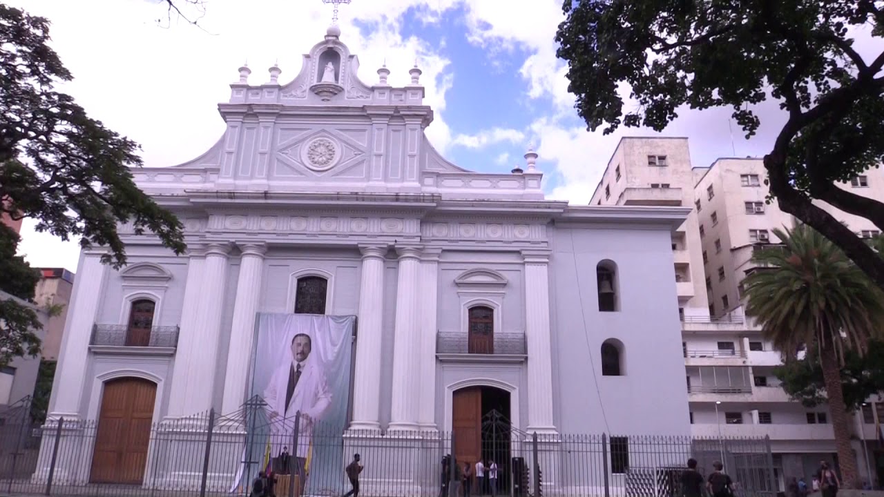 Vista del la iglesia Nuestra Señora de la Candelaria con la imagen de José Gregorio Hernández, este viernes, en Caracas (Venezuela).
