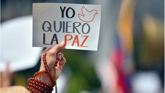 Una persona sostiene una pancarta durante la "Marcha del Silencio", pidiendo que cesen los bloqueos y hechos de violencia.