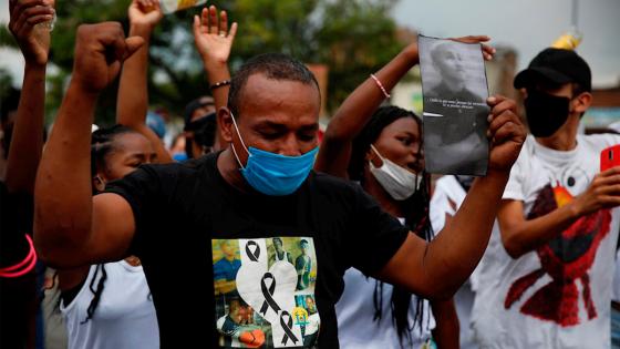 Personas participando de la protesta y exigiendo justicia por la masacre de 5 menores de edad el pasado 11 de agosto en Cali.