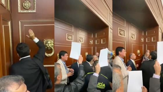 Varios familiares de la fuerza pública que asistían al Capitolio en un evento liderado por el Centro Democrático, decidieron irrumpir en la sala de espera del Salón Elíptico de la plenaria de la Cámara este miércoles. Buscaban ingresar al lugar donde se desarrolla la moción de censura del Canciller, Álvaro Leyva.
