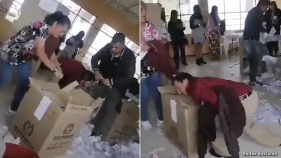En la denuncia hecha por redes sociales, se puede ver como varias personas destapan los buzones y comenzaron a sacar los votos ya marcados. Una vez afuera, los comenzaron a romper y tirar al aire.